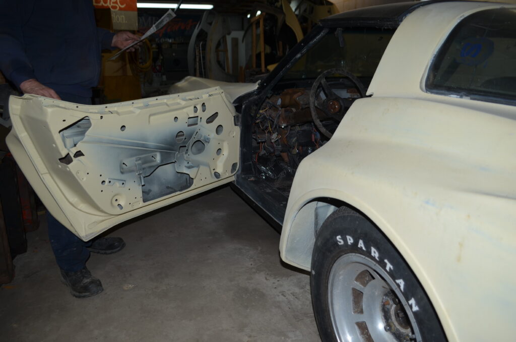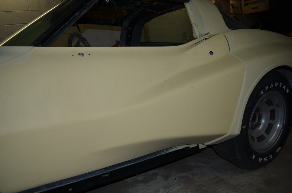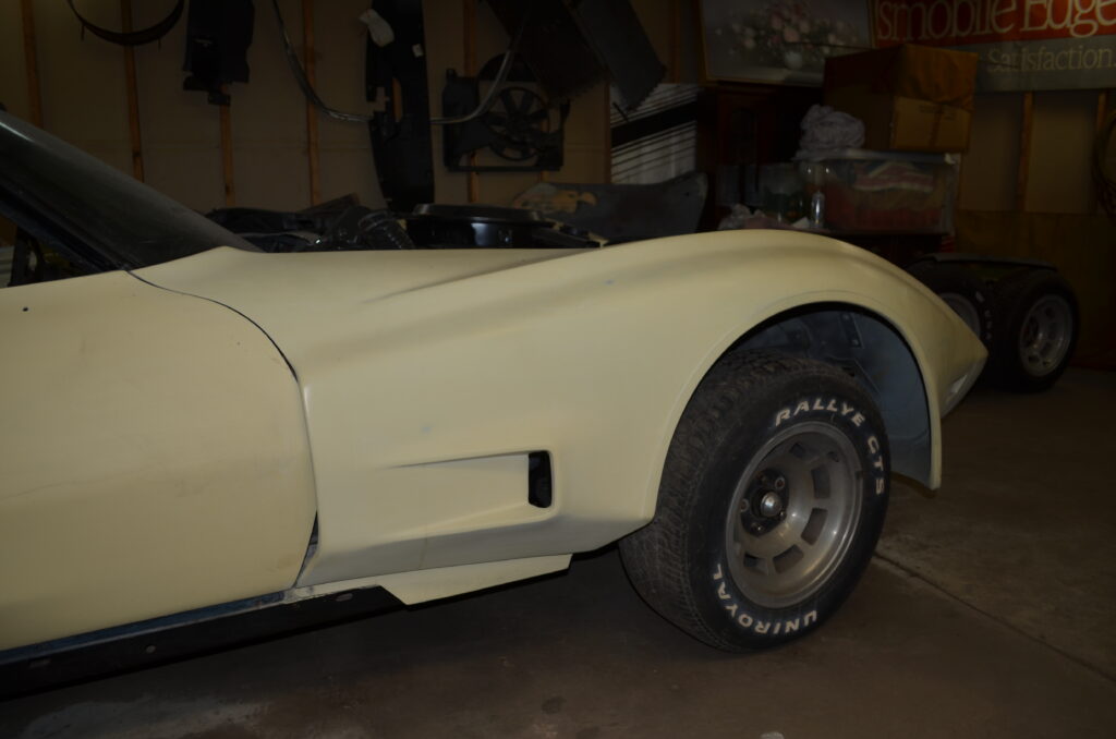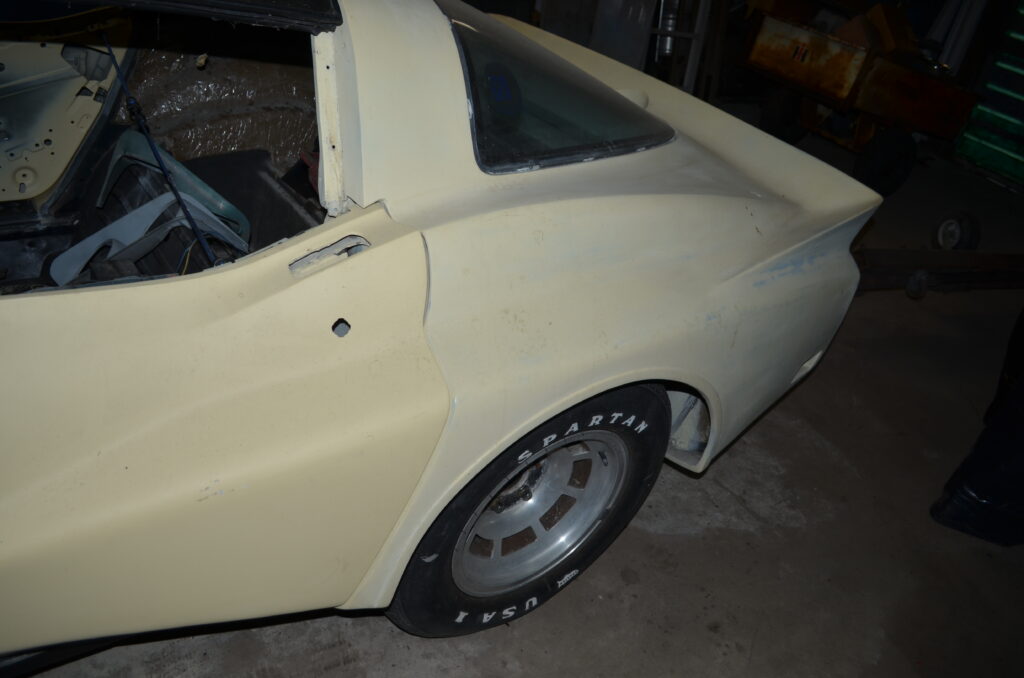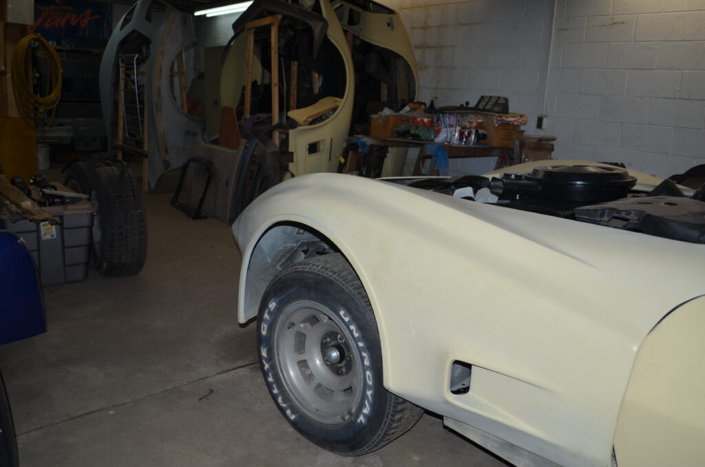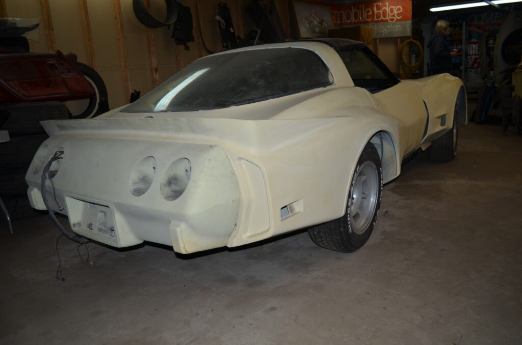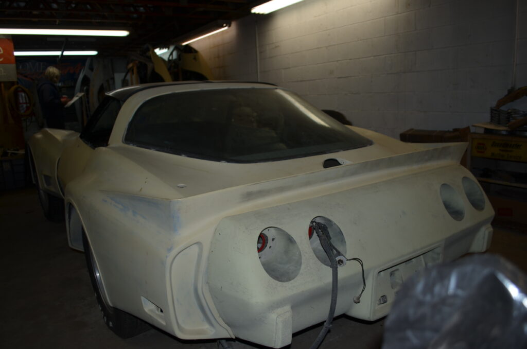 The first car to leave the shop is the 1979 wide body greenwood style Corvette